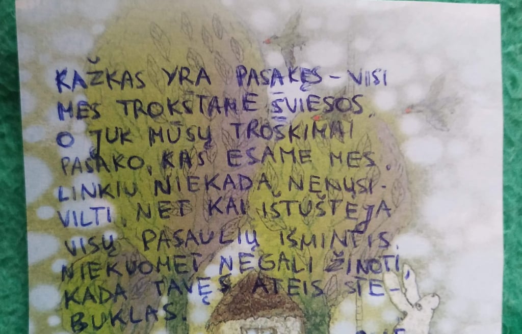 Su Daliuta (sena drauge ir buvusia ilgamete kaimyne) šiandien kalbėjomės, kad tie dienoraščiai būna pernelyg chaotiški. Tu taip į juos įsmengi, kad, atrodo, skradžiai žemę prapuolei, paskendai savo fantazijose. Nieko tikro, nieko reikalingo, tik mintys galvą išūžia ir nebematai šviesos tunelio gale.